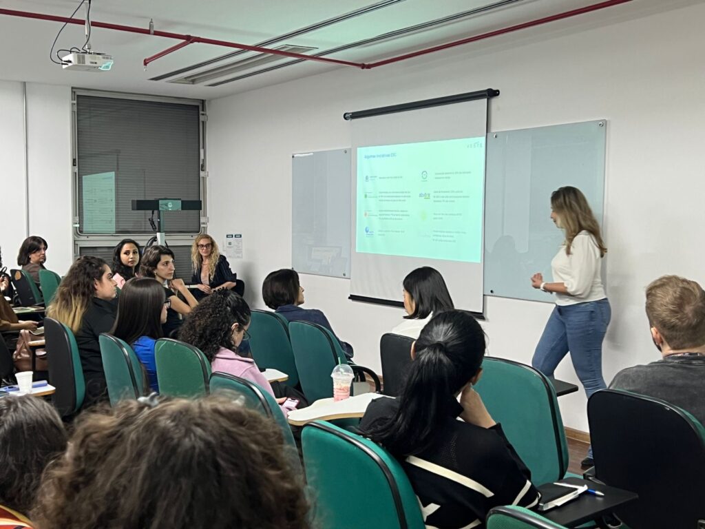 A estudante Lara Tappiz também ressaltou a relevância de aproximar os conteúdos aprendidos em sala de aula com a prática de mercado. Para ela, a palestra reforçou a importância de conectar as diferentes etapas da cadeia têxtil, do desenvolvimento da matéria prima até o varejo. “É muito legal quando a gente vê palestra e conversa sobre assuntos que entendemos e amamos”, contou.